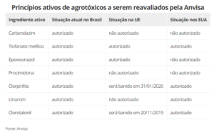 A Anvisa divulgou, nesta segunda-feira (26), a primeira lista de ingredientes ativos de agrotóxicos que terão reavaliação toxicológica a partir de uma metodologia própria do