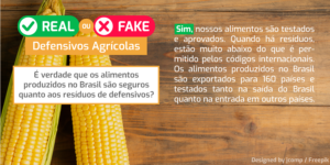 Confira abaixo a série de cards sobre Defensivos Agrícolas (real ou fake). O objetivo aqui é desmistificar e prestar esclarecimentos sobre os principais mitos e